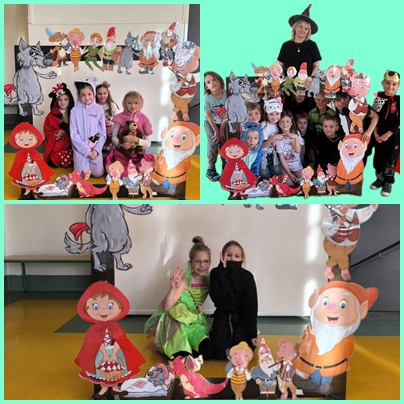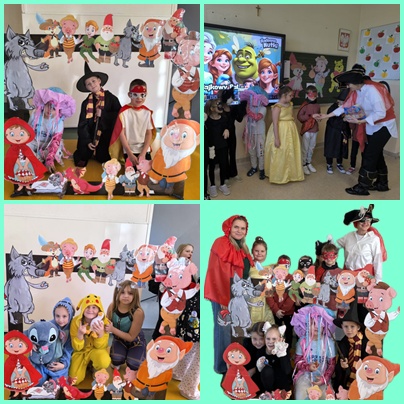 W czwartek nasza szkoła wyglądała jak z bajki. Z okazji Dnia Postaci z Bajek uczniowie klas I-III stali się swoimi ulubionymi postaciami z bajek. Na korytarzu można było spotkać wielu książkowych, bajkowych i filmowych bohaterów. Nawet nauczycielki dołączyły do zabawy. Były zagadki, kolorowanki, quizy i bajkowe krzyżówki. Dziękujemy Rodzicom za przygotowanie pięknych strojów, a Radzie Rodziców za słodki poczęstunek. Zapraszamy do obejrzenia galerii zdjęć z tego magicznego dnia.