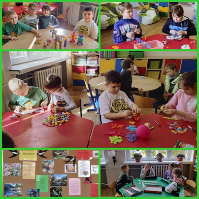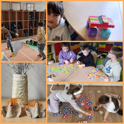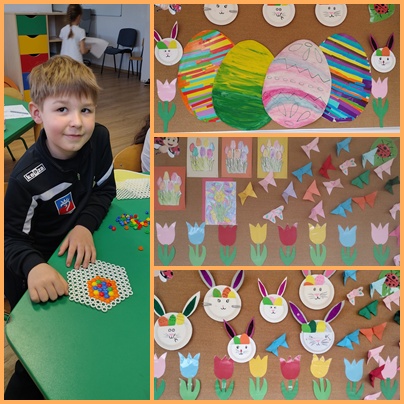 W kolejnym tygodniu tematem zajęć było zdrowie i zdrowe odżywianie. Wszyscy z niecierpliwością czekaliśmy na nadejście wiosny – pachnącej, kolorowej i pełnej ciepła. Wyczekiwaliśmy słonecznych dni oraz budzącej się do życia przyrody. Dlatego w naszej świetlicy szkolnej wiosna zawitała już na dobre w czytanych wierszach, pracach plastycznych i zabawach na świeżym powietrzu. Koniec miesiąca to zadania, rozmowy i prace związane z Wielkanocą. Odbyliśmy też wirtualną wycieczkę na Wyspę Wielkanocną. W tym miesiącu czas spędzony w świetlicy szkolnej umiliły nam gry planszowe i nowe klocki zakupione przez Radę Rodziców.