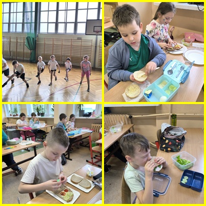radość sprawiło uczniom samodzielne przygotowanie zdrowego śniadania. Śniadanie, to najważniejszy posiłek dnia, dlatego na naszych ławkach zawitały kolorowe warzywa, twarożki i pełnoziarniste pieczywo. Z wielkim zaangażowaniem każdy tworzył własne, pyszne kompozycje, które znikały z talerzy w mgnieniu oka! Opr. E.R