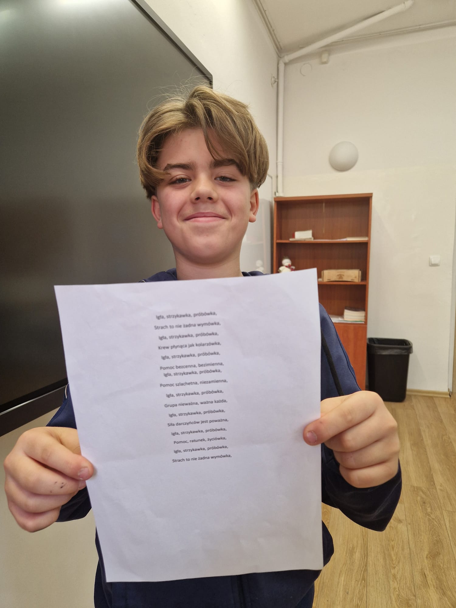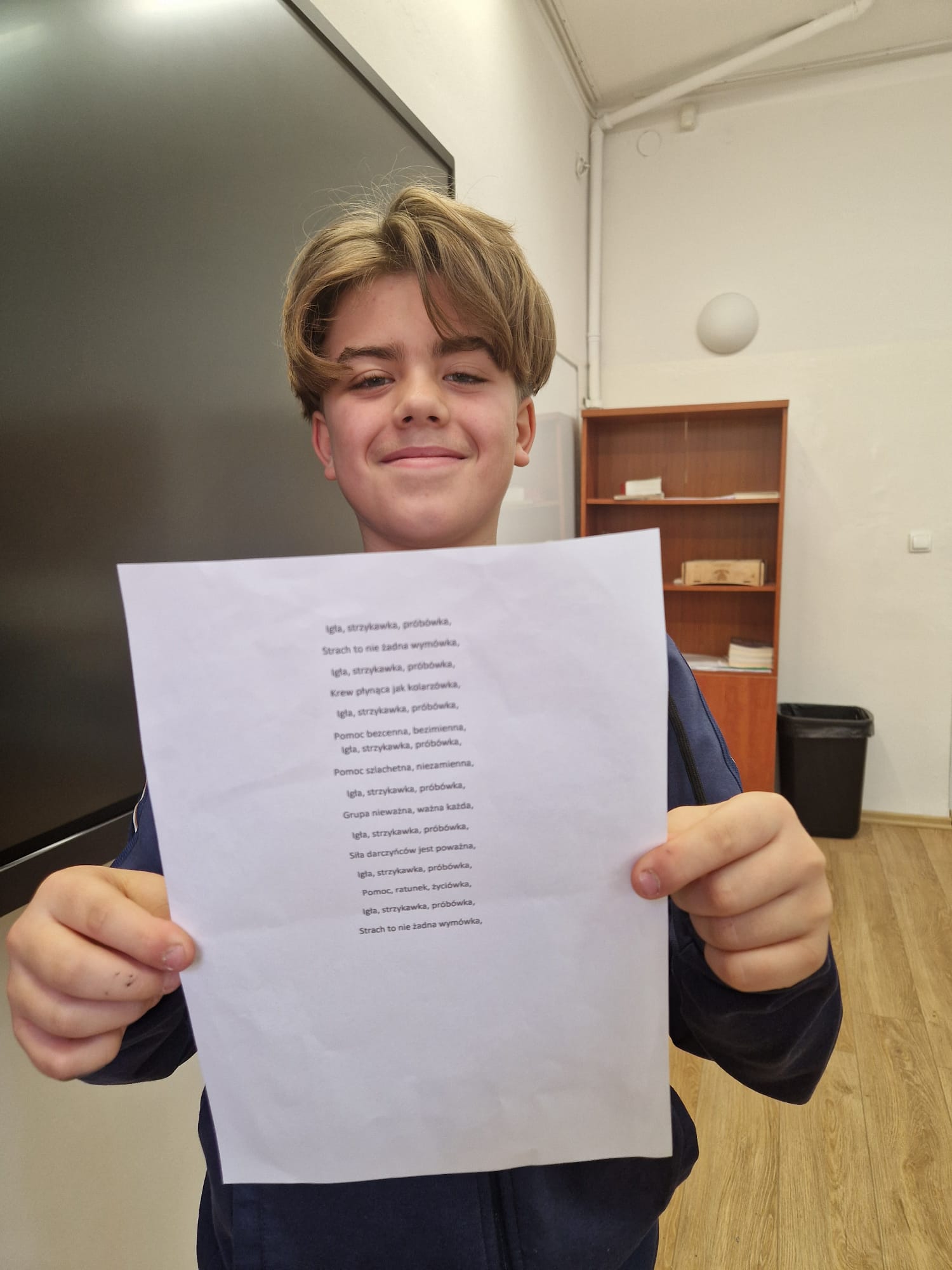 Wyróżniony i doceniony został utwór Seweryna Pendyka z klasy 5B. Zwycięskie prace zostaną opublikowane na stronie internetowej Zachodniopomorskiego Oddziału Okręgowego PCK w Szczecinie oraz w mediach społecznościowych, a nagrody zostaną wręczone podczas dorocznej Gali Wolontariatu PCK.