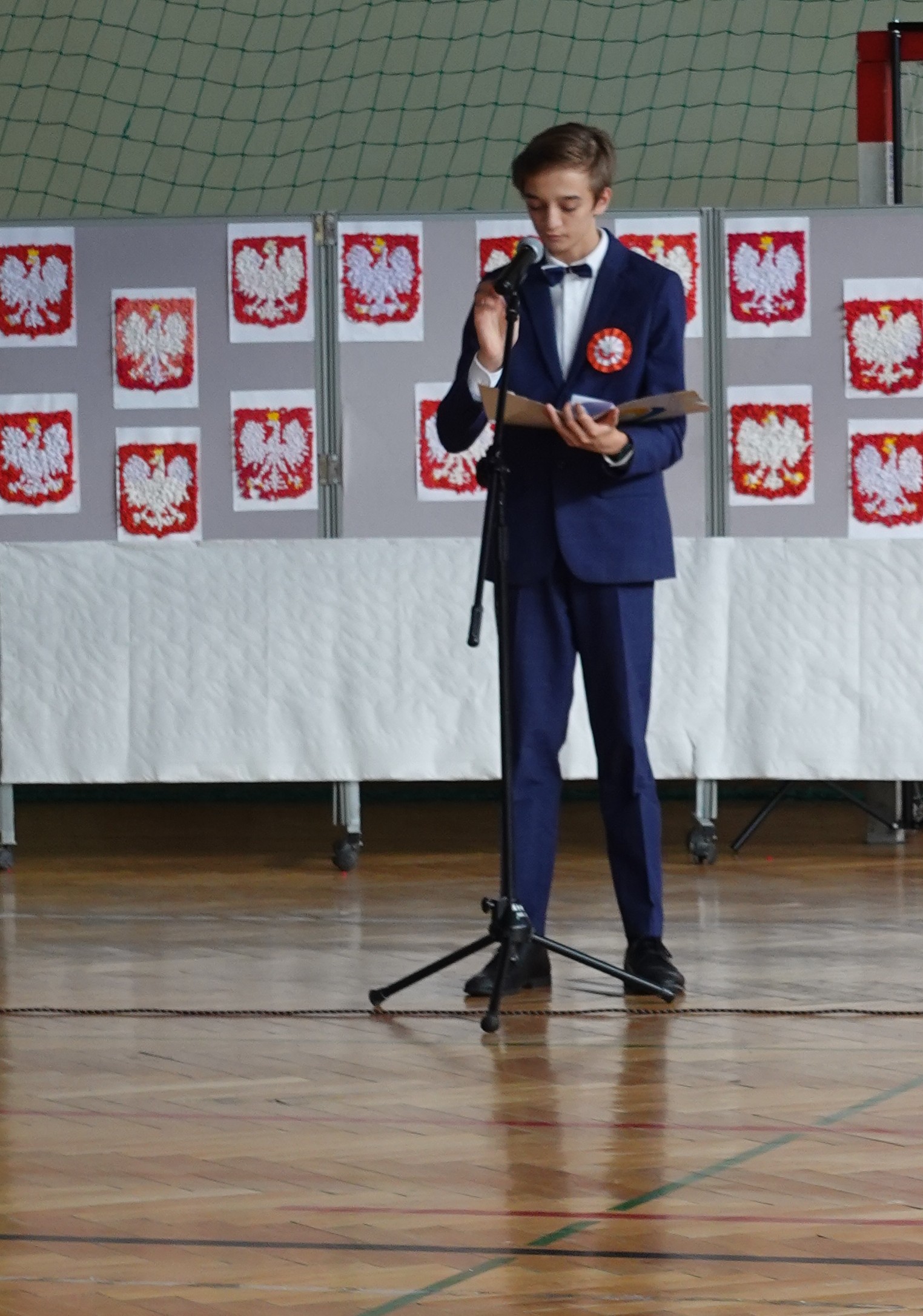 W piątek, 7 listopada, w naszej szkole odbył się uroczysty apel z okazji Narodowego Święta Niepodległości, przygotowany przez uczniów pod opieką pana Marcina Maksymowicza.
