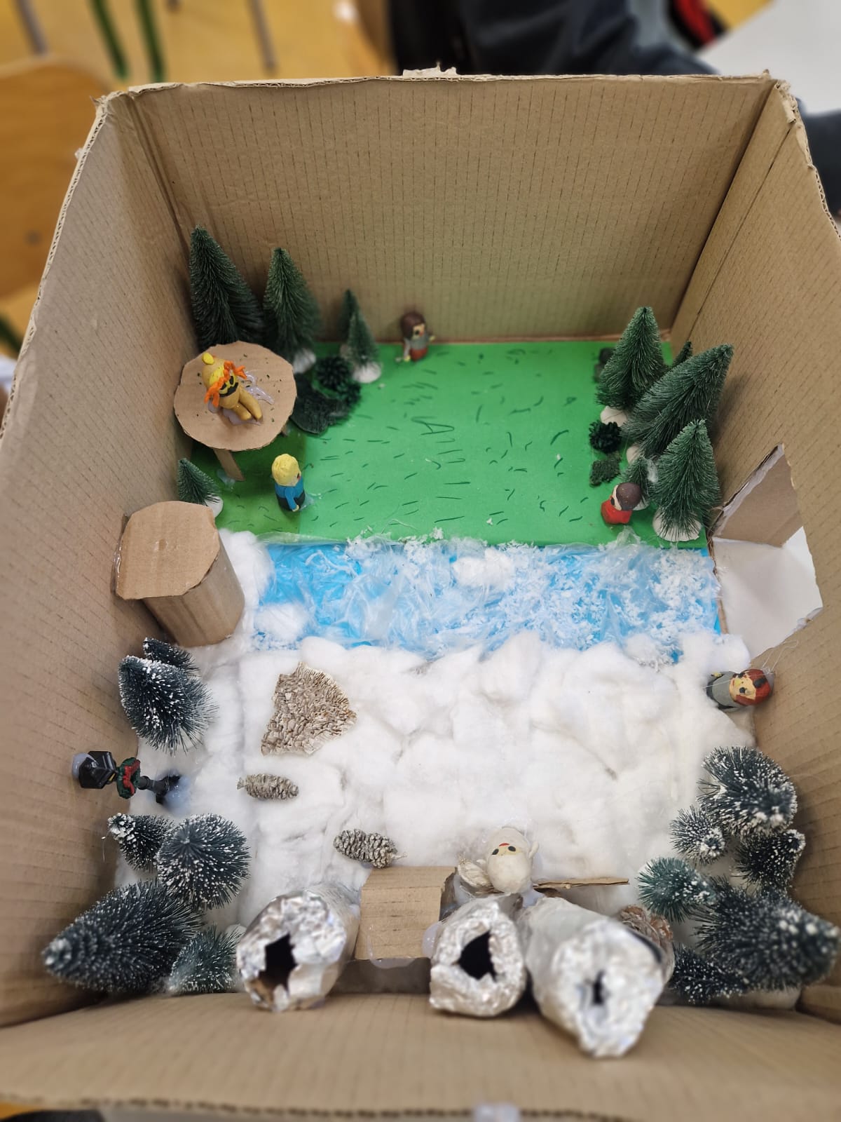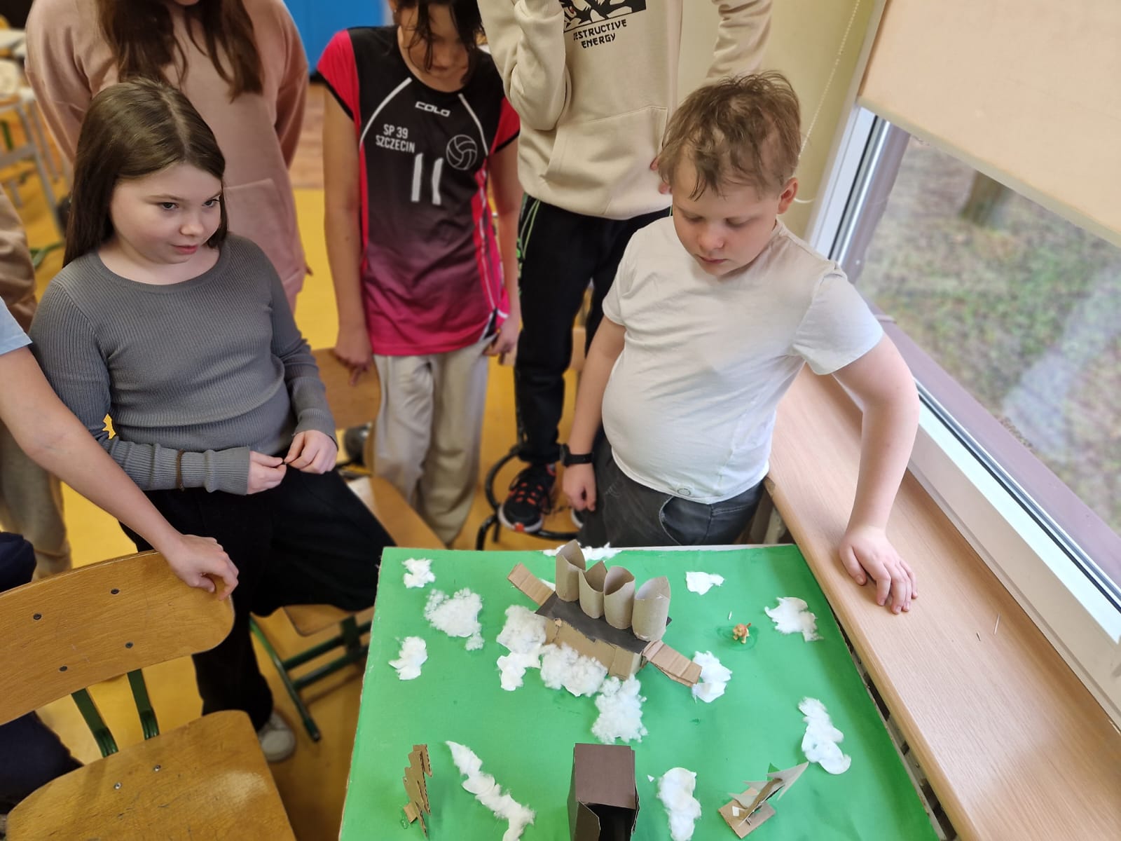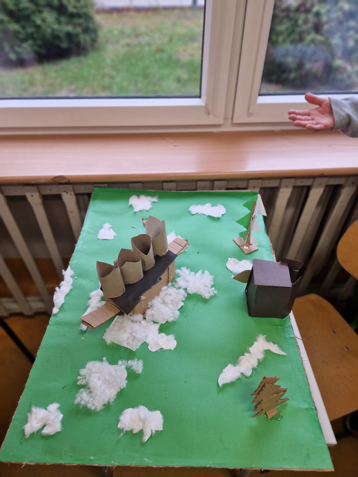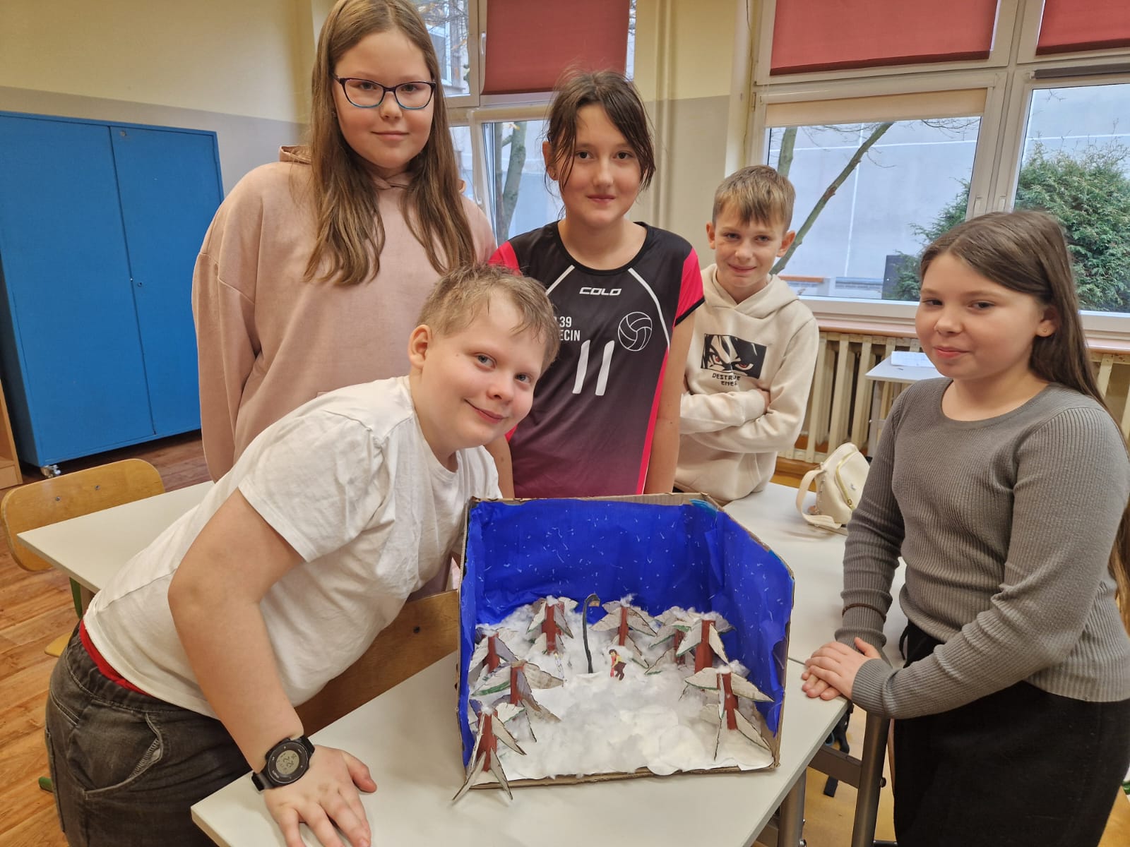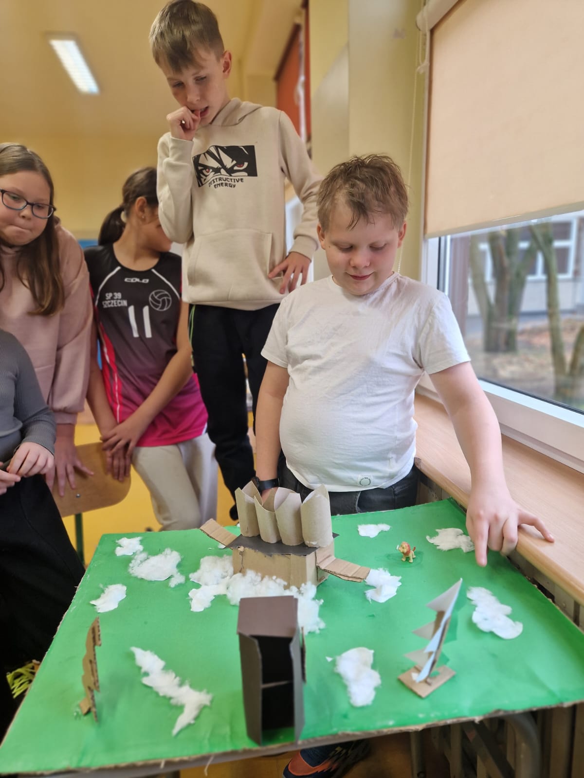 Na listopadowych lekcjach języka polskiego, uczniowie klasy 5B stanęli przed nie lada wyzwaniem – budowali makietę Narnii. Uczniowie musieli wyobrazić sobie, jak wyglądają magiczne miejsca, jak wyglądają postacie i jak przedstawić atmosferę panującą, w tej magicznej i niezwykłej, krainie. Praca nad projektem wymagała pomysłowości i kreatywnego podejścia do wykorzystania różnych materiałów (papier, karton, bibuła, gałązki, wata), aby odtworzyć elementy Narnii. Wykonanie makiety pozwoliło uczniom dosłownie wejść do świata wykreowany przez C.S. Lewisa, co było dla każdego ucznia cennym doświadczeniem edukacyjnym.
