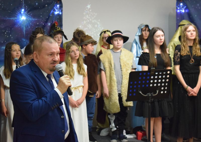 Na zakończenie głos zabrał pan dyrektor, który złożył wszystkim świąteczne życzenia, podkreślając szczególnie wartość pokoju, wzajemnego szacunku i rodzinnego ciepła.