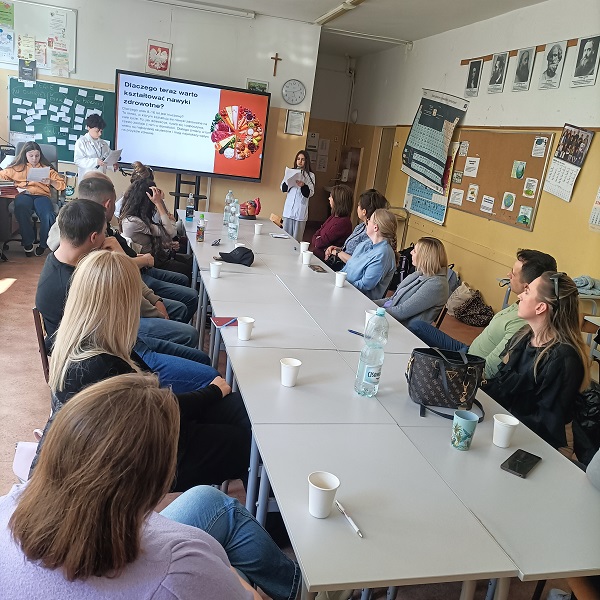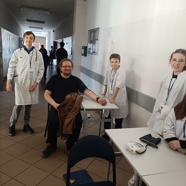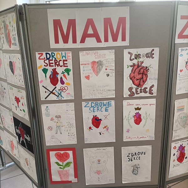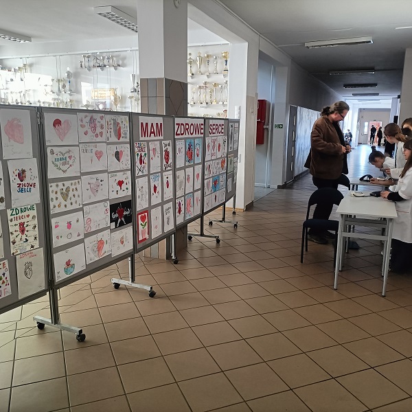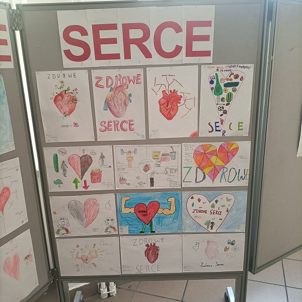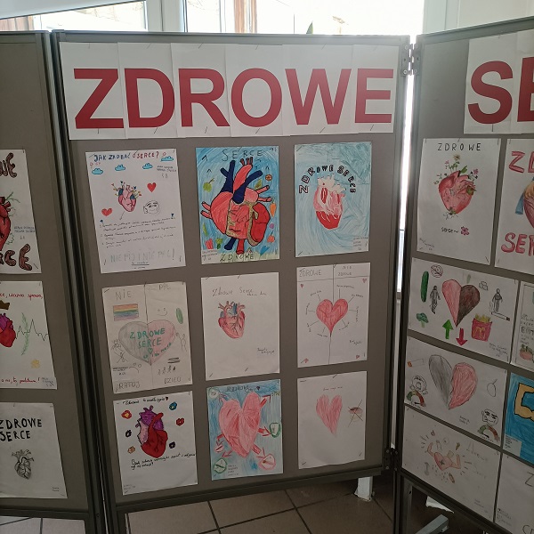 W dniach 20 - 24.04 2026 r. zaplanowano szkolne obchody "Tygodnia dla serca" w ramach szkolnych "Dni Promocji Zdrowia". W tym roku wszystkie inicjatywy miały związek z sercem, jego funkcjonowaniem i dbałością o zdrowie serca. Na dolnym holu pojawiła się wystawa prac uczniowskich "Mam zdrowe serce", na którą złożyły się prace plastyczne wykonane przez uczniów klas 4-7 w ramach zajęć plastycznych. Jak można się domyślić, nasze obchody zaczęły się już wcześniej - na lekcjach plastyki, kiedy to uczniowie te prace tworzyli. 21.04 (wtorek) odbyły się zebrania dla rodziców dzieci z klas 4-8, na których rodzice częstowali byli przez ich dzieci herbatką z melisy dla wyciszenia i relaksu, oraz wodą. Rodzice mogli również zmierzyć sobie ciśnienie i określić BMI. W punkcie pomiarowym pracowały dwa zespoły uczniów z Koła Biologicznego, aby sprawnie obsłużyć wszystkich chętnych. Rodzice klasy 5a mogli obejrzeć premierę prezentacji przygotowanej na następny dzień, w ramach której wskazano najlepsze i najgorsze dla serca elementy stylu życia.