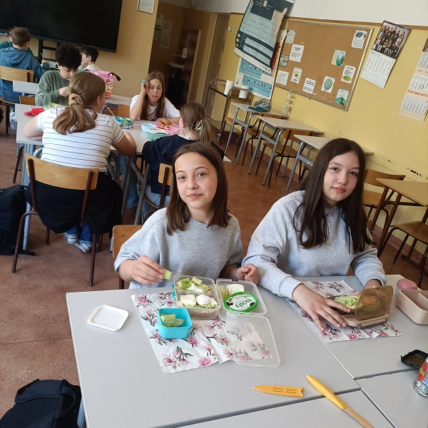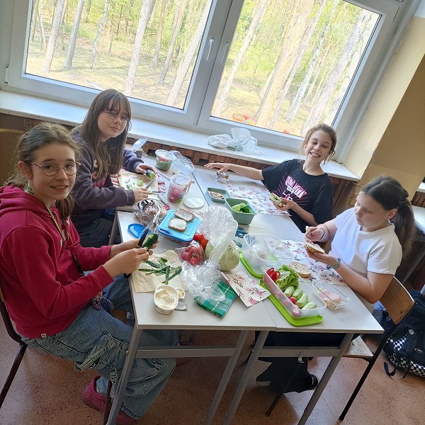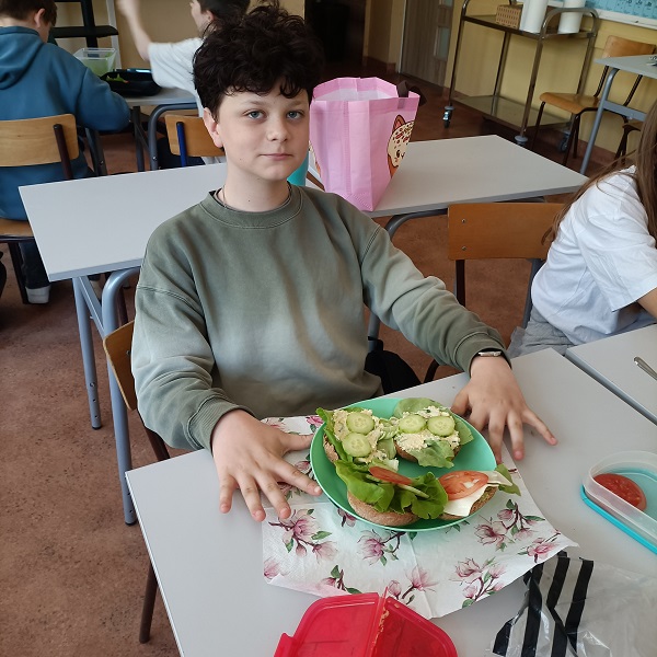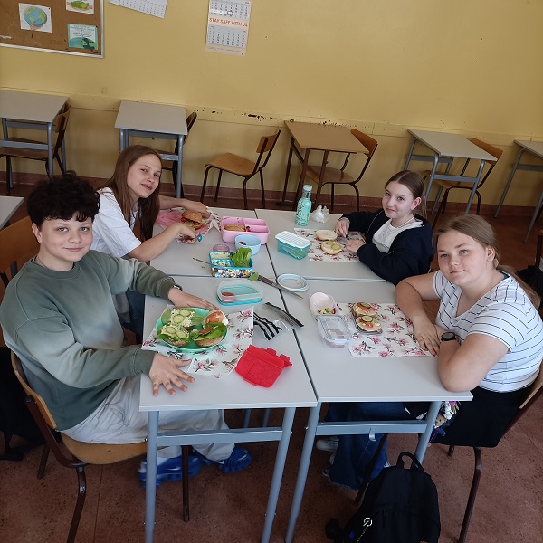 Przez cały tydzień w ramach "Tygodnia dla serca" poszczególne klasy (4-8) szykowały kanapki, sałatki i napoje z zachowaniem zasad "Talerza Zdrowego Żywienia. Następnie uczniowie spożywali wspólnie przygotowane przez siebie potrawy. Posiłki tak komponowane zapewniają wspaniałą kondycję naszemu sercu, a nam długie lata życia w zdrowiu. W piątek przyszedł czas na klasę 5A. Mieliśmy też kilka pomysłów zabawnych i zdrowych kanapek dla niejadków - obowiązkowo na ciemnym pieczywie. Było trochę oburzenia, ale ostatecznie okazało się, że całkiem smaczne to ciemne pieczywo. Dziękujemy z tego miejsca rodzicom, bo bez ich pomocy posiłki nie byłyby tak różnorodne.